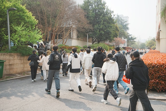 上午9时30分,模拟警报声响起,演练正式启动。各班级教师迅速响应、确认现场情况,立即组织学生按照预定路线快速、有序撤离教学楼。撤离过程中,各年级部、班主任、科任教师、楼梯值守教师坚守关键点位,全程引导、维护秩序,提醒学生规范避险动作,严防拥挤、推搡等危险行为,确保疏散通道畅通、人员安全转移。