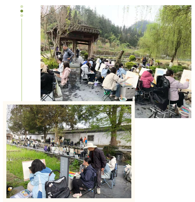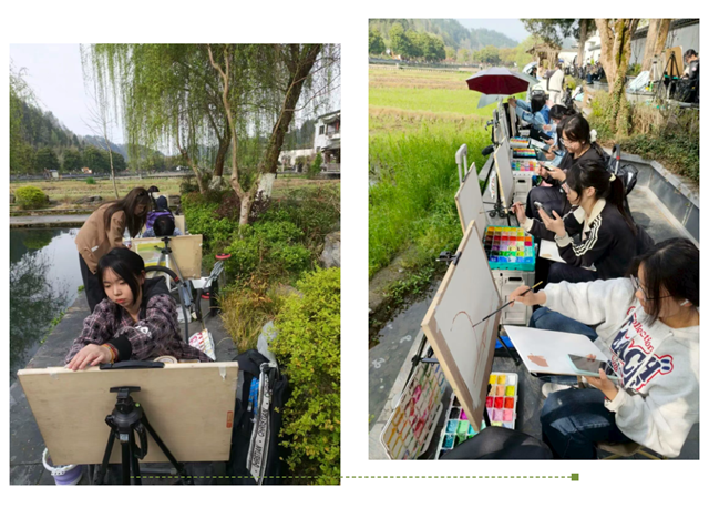 当最后一笔落下,一张张承载着徽州韵味与学子心血的作品悄然成型。画纸上,错落有致的油菜花田生机勃勃,若隐若现的古村点缀其间,光影流转间,既有自然的灵秀,也有艺术的温度。这一刻,学子们真切感受到,自己已然跳出了最初的生涩模仿,真正用画笔读懂了这片土地的生命力,完成了从“画西递”到“懂西递”的悄然蜕变。